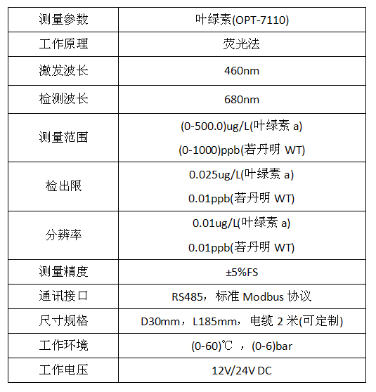 水體中葉綠素的濃度反映了浮游植物的含量,監(jiān)測(cè)水中葉綠素的含量可判定水體富營(yíng)養(yǎng)化程度,預(yù)警水質(zhì)污染和水貨、赤潮的發(fā)生。
